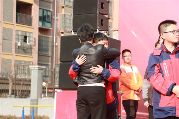 王恩老师首先用一连串流利的英文和同学们打了个招呼,强调了英语口语在交流的重要性,并用一个个有趣的事例,让同学们在笑声中认识到了汉语的伟大,一万多人的现场反响热烈,掌声不断,大家都被王恩老师的风趣幽默给吸引。然后,就主题“下一个奇迹就是你”,王恩老师从两方面着手,首先针对同学们的在学习中的种种情况,王恩老师提到同学们应培养“国际自信”,要明白所谓天才,不过是重复次数最多的那个人而已,并举了自己初中被嘲笑的事例,让同学们感同身受,明白了出丑也是人生中的一次智慧。然后针对家长,王老师提到了亲子关系在教育中的重要性,从自己为人父的角度,帮助同学们理解父母,也让父母理解了孩子,大家都在短暂却感动至深的拥抱中重新审视心中的自己。其实努力学习的目的就是为了让自己变得更有价值,让自己爱的人过得更好。