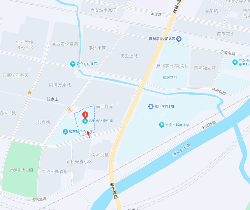学校地址:六安市磨子潭路南河大道向内500米(城南中央森林公园斜对面)。
